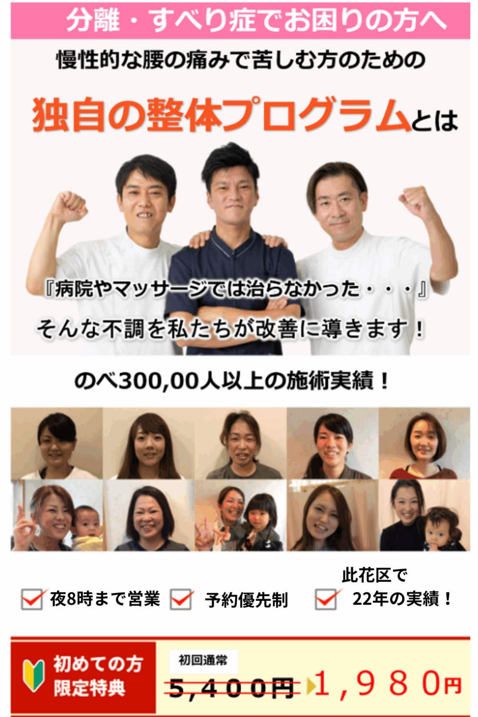 カラダ的に治してくれるのはもちろん、その他に悩みを聞いて下さったり、精神面もとても回復しました。