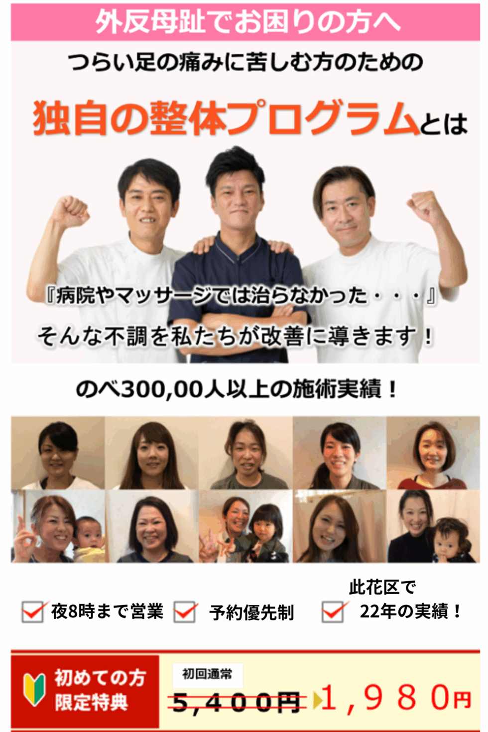 もちろん痛みの出ている外反母趾に対しての施術もおこないながら
